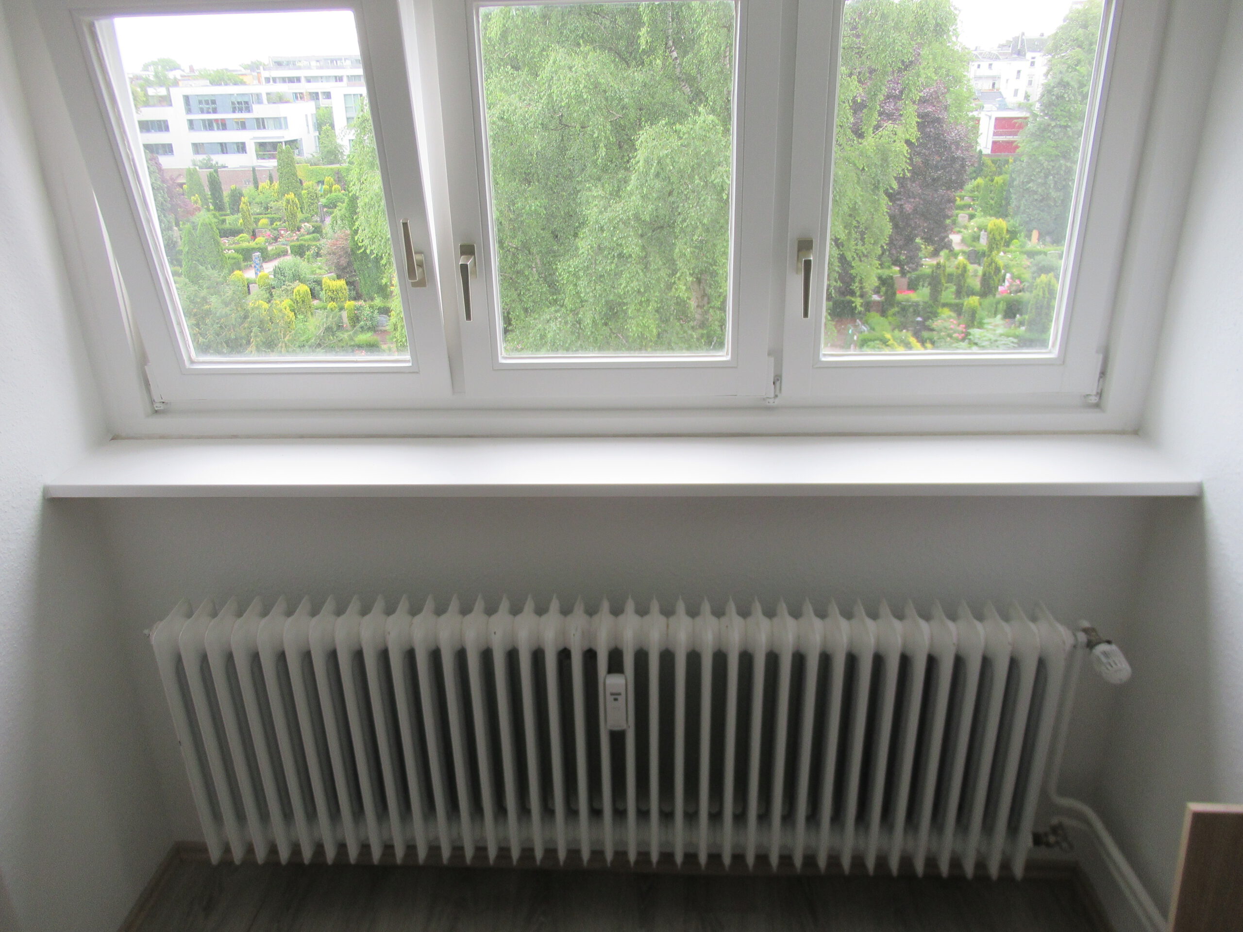 Weil unter den Fensterbänken eine Heizung sitzt – und sich Massivholz bei wechselnder Luftfeuchtigkeit gern mal verzieht oder wölbt.