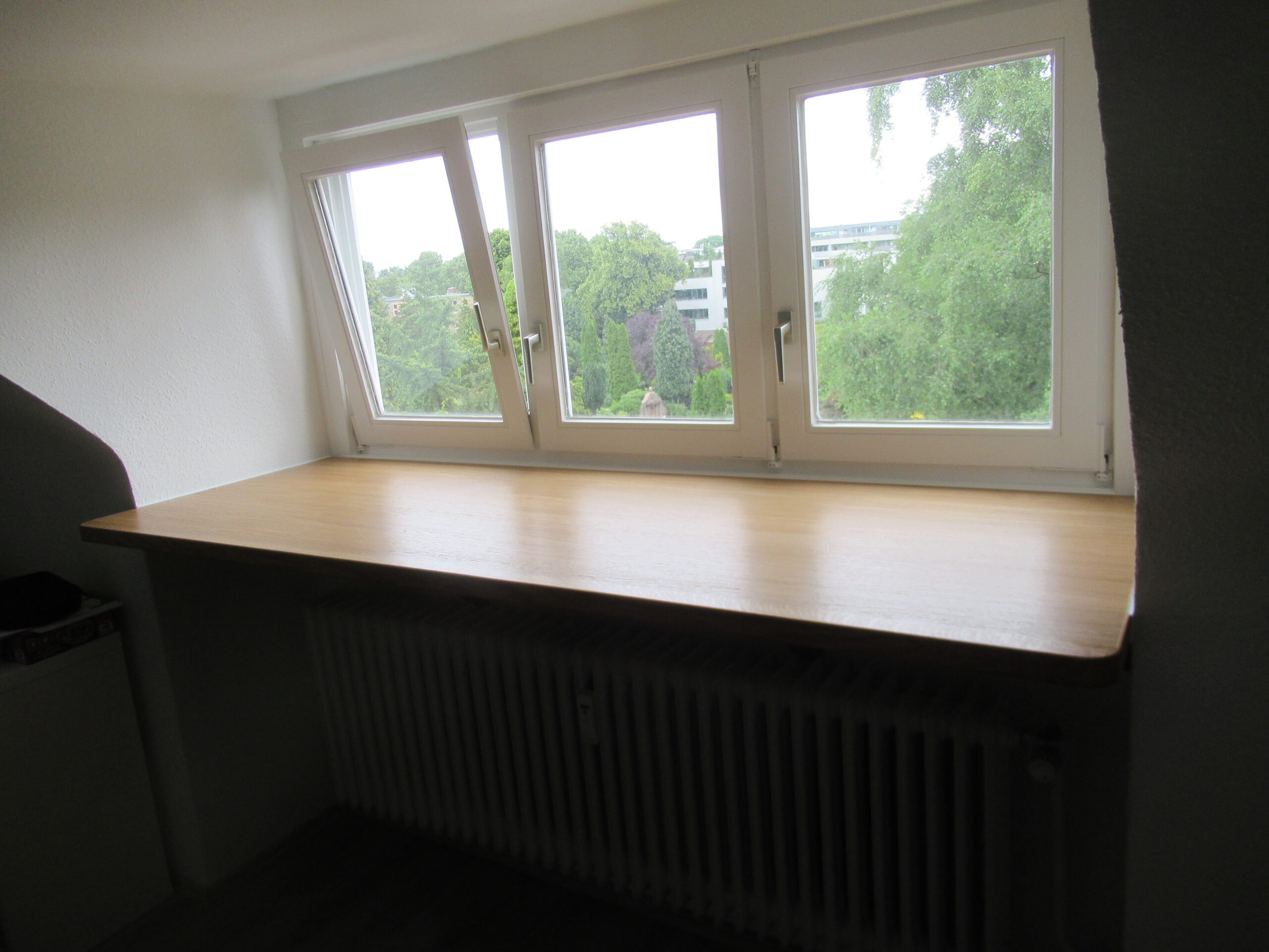 Gefertigt haben wir die Fensterbänke aus Eiche-Tischlerplatte – und das ganz bewusst: